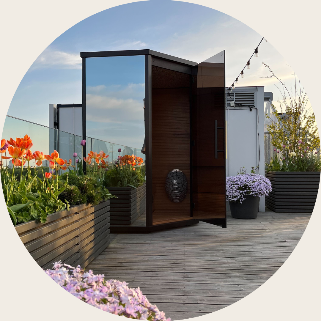 Introducing the Hele Mini, part of our renowned Hele series—a luxurious corner sauna designed for small spaces. Crafted to fit on terraces or balconies, this sleek sauna provides a premium experience for 2-3 people, with hypoallergenic wood, panoramic views, and ambient LED lighting. Fully pre-assembled, it’s ready for you to enjoy without the hassle of installation.